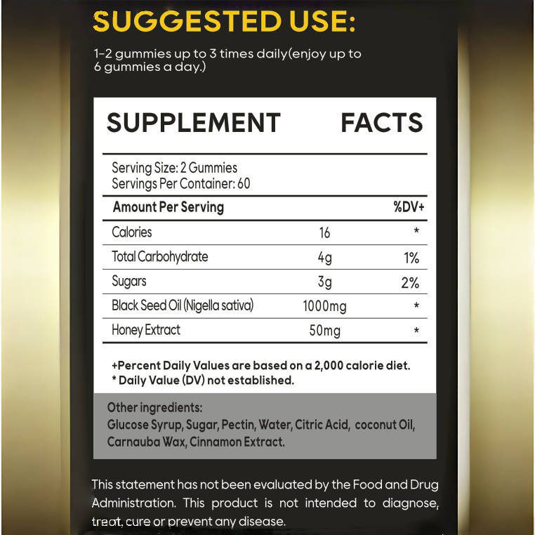 YHT Sativa Black Seed Oil Gummies 1000MG For Antioxidant Immune Joints Digestion Hair Skin Support