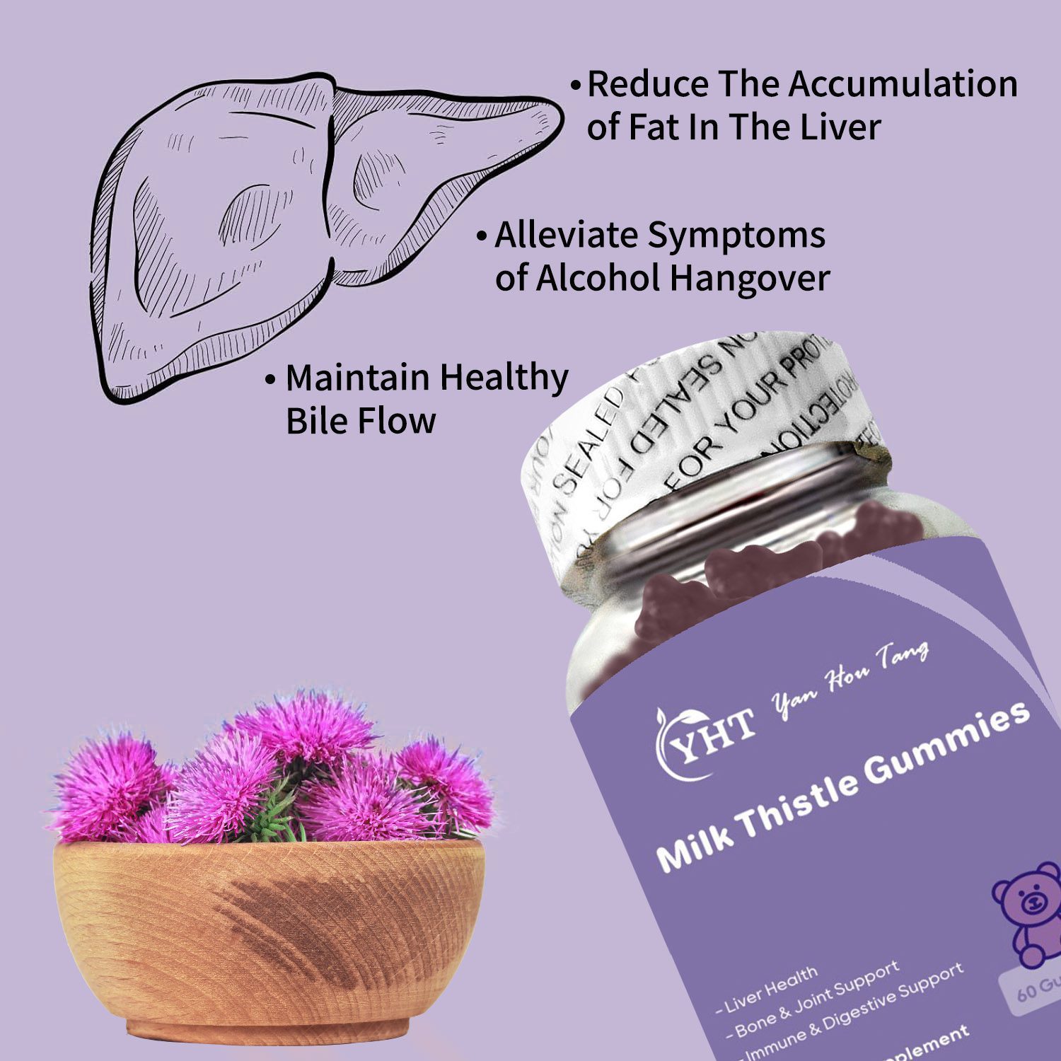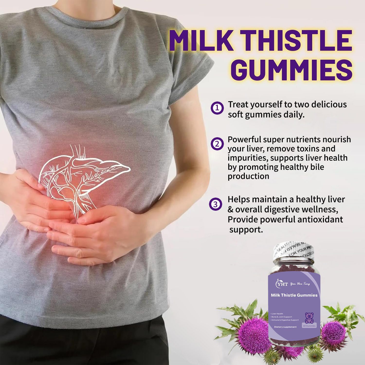 YHT Milk Thistle Gummies Liver Cleanse Detox Antioxidant